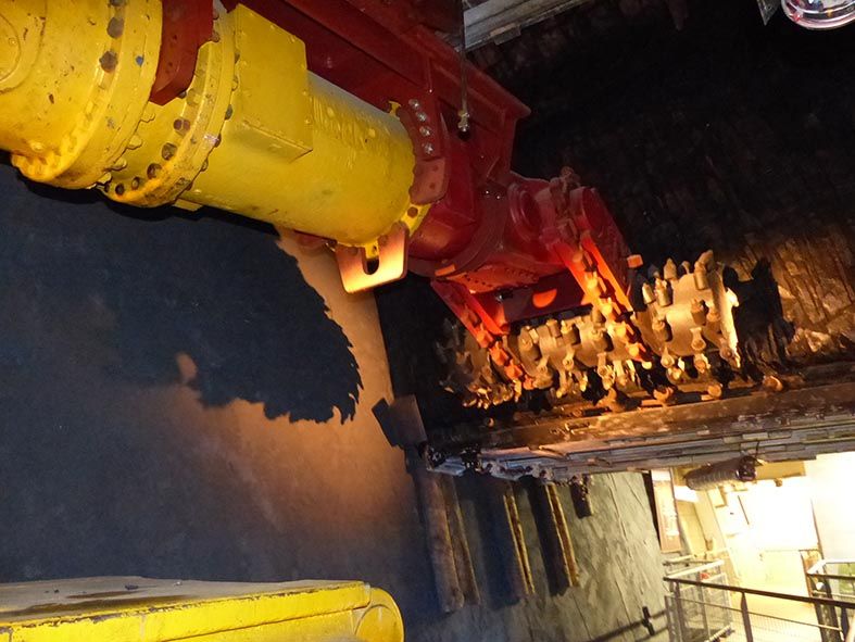 | Haveuse Electra 2000 pour abattage horizontal. Chacun des deux tambours était plus haut qu’un homme. | |